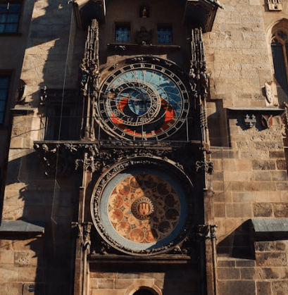 Nuestra visita guiada comienza en el Reloj Astronómico, donde verás el famoso espectáculo de figuras en movimiento rodeado de arquitectura medieval.
